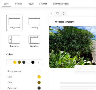 Build a professional, SEO-ready website in minutes with Lodgify’s drag-and-drop editor. Choose a template, customize it your way, and turn search traffic into direct bookings.