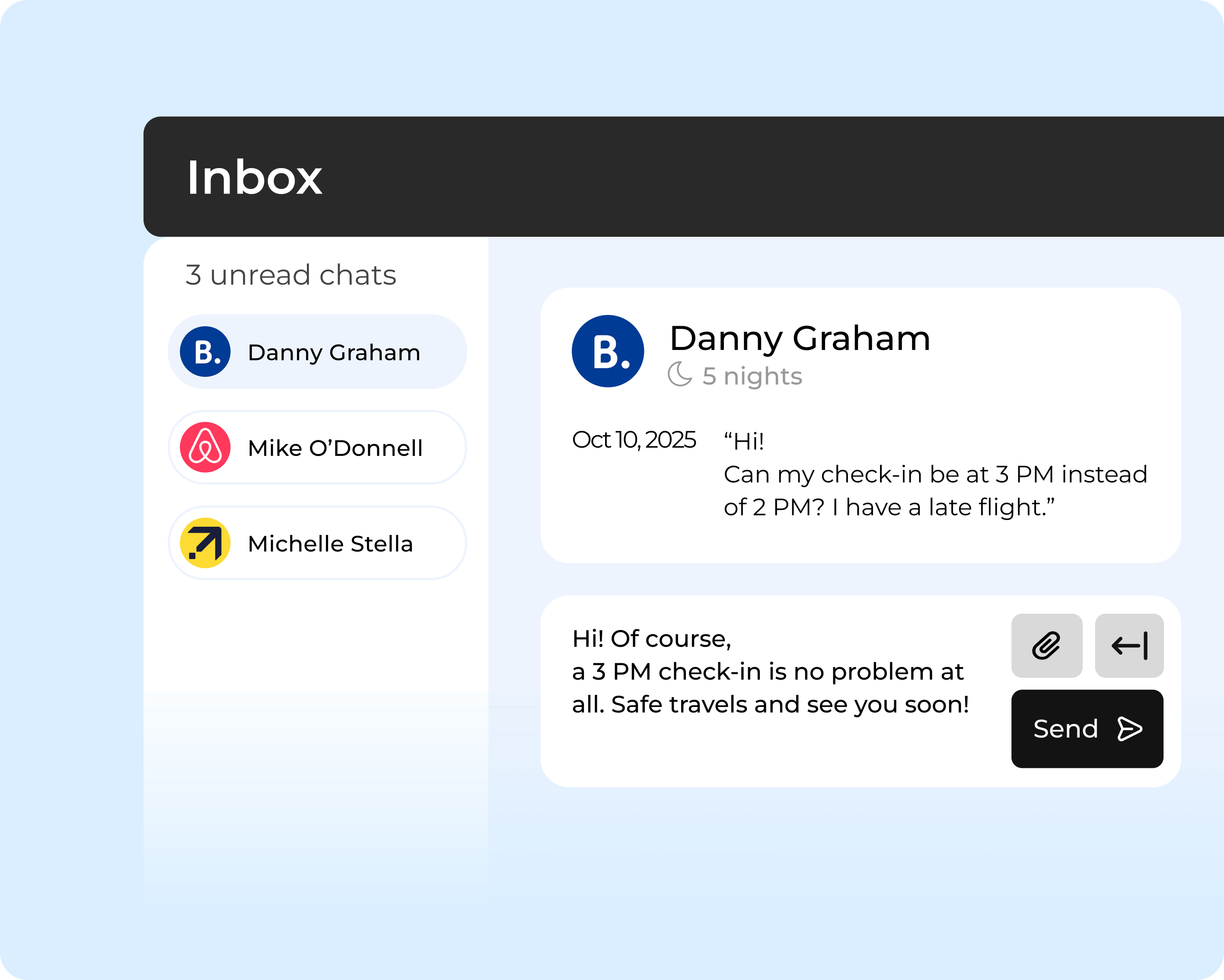 Lodgify consolidates all guest messages from every channel into one clear view, making communication fast and organized. Hostaway’s system is built for larger teams and can feel overwhelming for independent hosts.